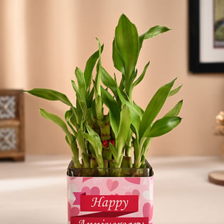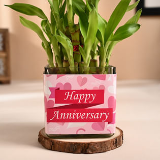 Happy Anniversary 2 Layer Lucky Bamboo N Candle