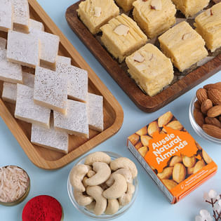 Two Mandala Rakhis With Kaju Katli N Dry Fruits