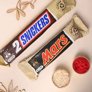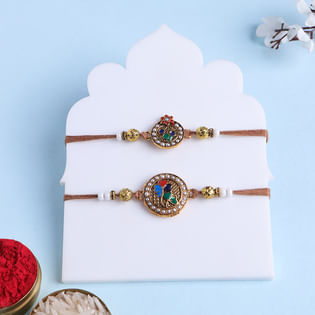 Set of 2 Designer Rakhi With Cadbury Delights And Nutty Assortment