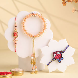 Pastel Beads N Pearl Rakhi Trio With Chocolates