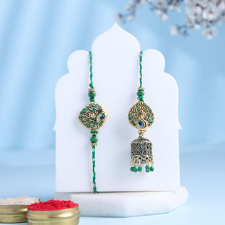 Regal Peacock Bhaiya Bhabhi Rakhis With Treats