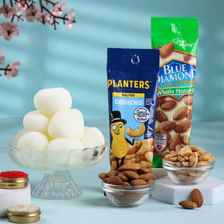 Designer Rakhi Duo With Healthy Nuts N Sweets