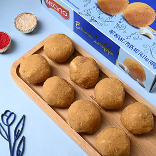 Set Of Two Royal Charm Rakhis With Besan Laddu