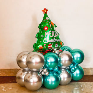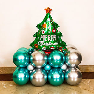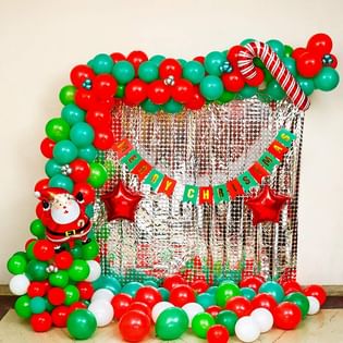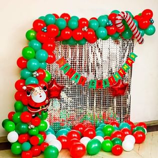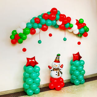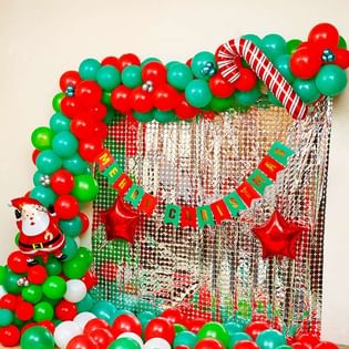 Vibrant Balloon Arch N Pillars Christmas Decor