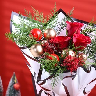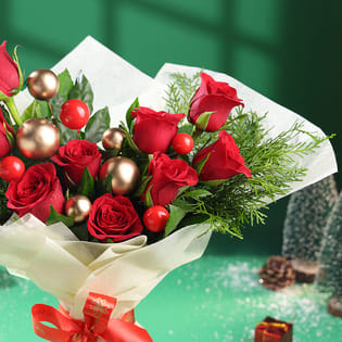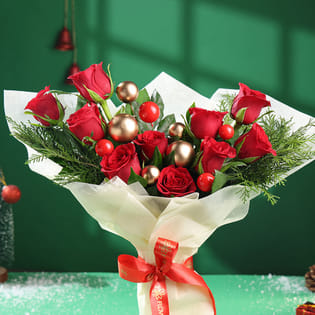 Christmas Elegance Red Rose Bouquet