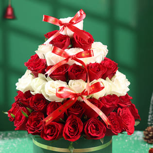 Festive Red N White Christmas Rose Tower
