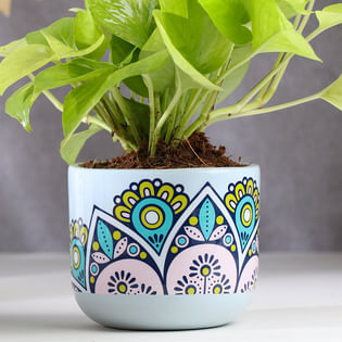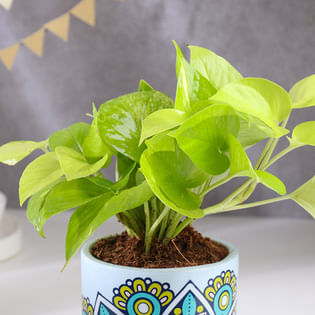Money Plant In Rangoli Terracotta Pot