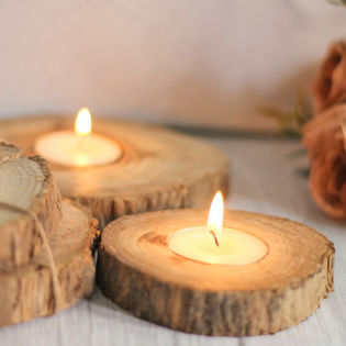 • - Natural Log Teak Wood T-light Candle Coasters (Set of 4)