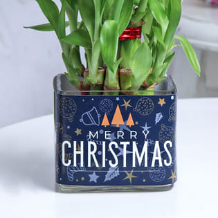 Lucky Bamboo In Merry Christmas Glass Vase
