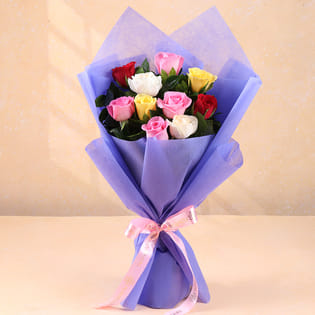 Choco Vanilla Cake With Colourful Roses Bouquet