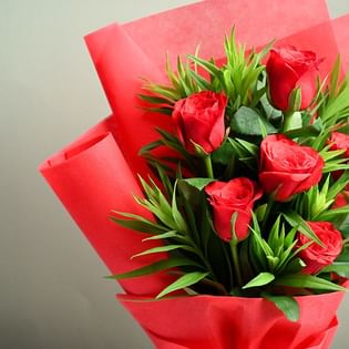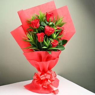 Butterscotch Crunch Cake N Red Roses Bouquet Combo