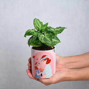 Syngonium Plant In Golden Leaf Terracotta Pot