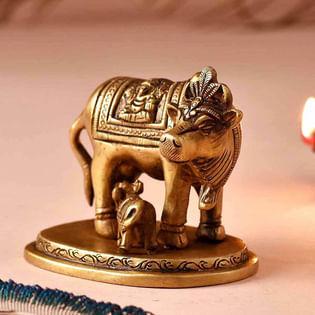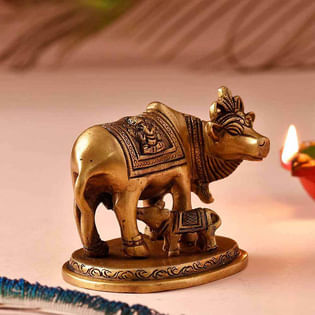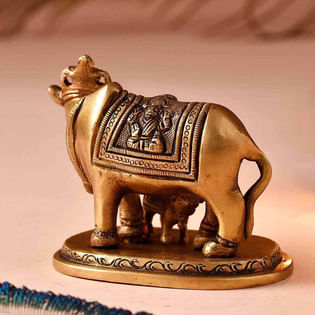 Heavy Brass Kamdhenu Cow N Calf Idol