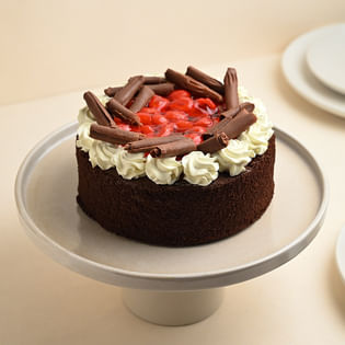 Cherry Black Forest Cake With Golden Bow Teddy Bear