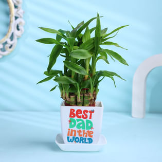 Bamboo Plant In Best Dad Pot With Almond Rocks