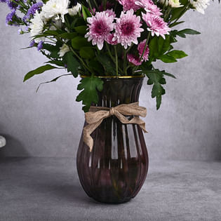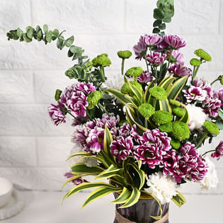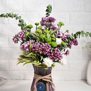 • - 2 Stem Green Button Daisy In Purple Premium Paper