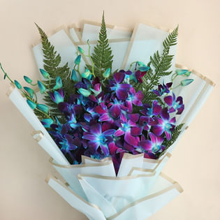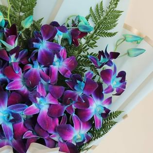 • - Bunch Of 6 Blue Orchids With Fer Leaves