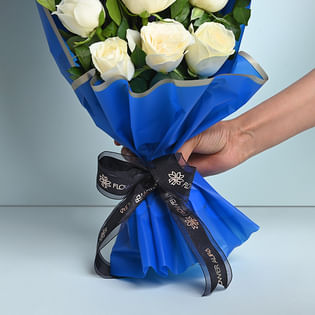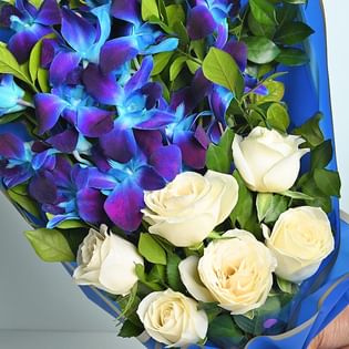 • - Bunch of 3 Blue Orchids and 1 White Lilies
