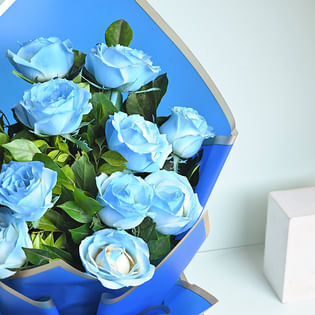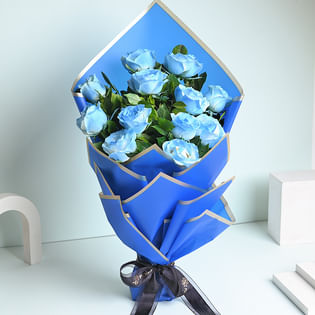 • - 12 Blue Sprayed Roses In Blue Premium Paper