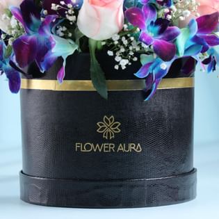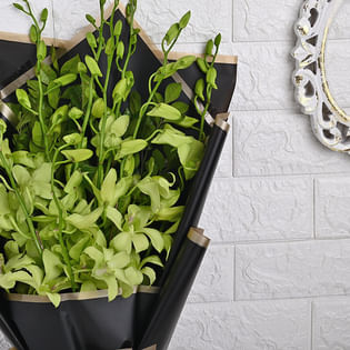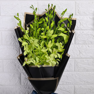 10 White Orchids in Luxe Black Wrap