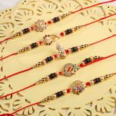 Celebrate Raksha Bandhan with a combo that beautifully blends tradition and indulgence. It features five designer Rakhis, each adorned with intricate motif dials, golden embellishments, pearls, beads, and shimmering studs. Complementing these elegant threads is a Ferrero Rocher box, offering a flavourful burst of rich chocolate and crunchy hazelnuts. Thoughtfully curated and festive in every sense, this gift is perfect for making your siblings feel truly cherished.