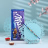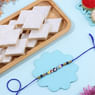 This Raksha Bandhan, wrap your brother in love and protection with this stunning Evil Eye Rakhi. Designed with vibrant, multicoloured evil eye charms, this Rakhi is more than just a thread—it's a shield against negativity and a symbol of your unwavering bond. The delicate beads and intricate gold accents add a touch of elegance, while the deep blue thread signifies strength and trust. The Rakhi makes for a heartfelt way to bless your brother with positivity, happiness, and success. Tie this Rakhi as a promise of care, a silent guardian that stays with him always.