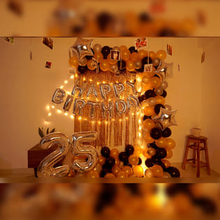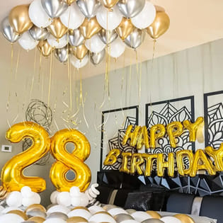 Grand Gold N Black Birthday Balloon Decor