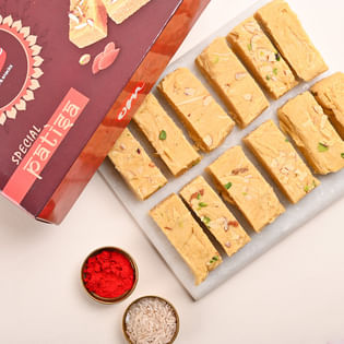 Transcendent Buddha Figurine With Dhoda Sweets Hamper