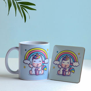 Cute Unicorn Mug N Coaster With Mini Cadbury Celebration