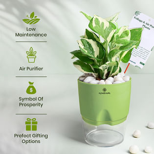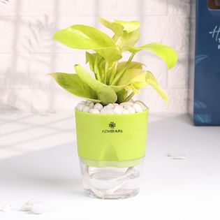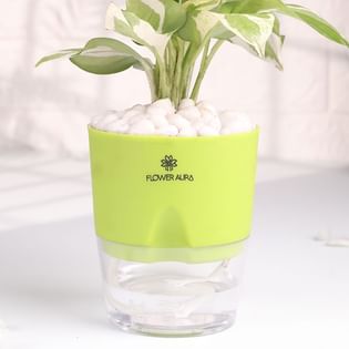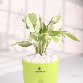 Lively White Pothos In Green Self Watering Pot