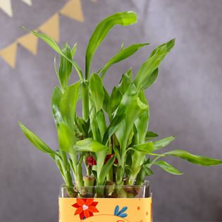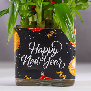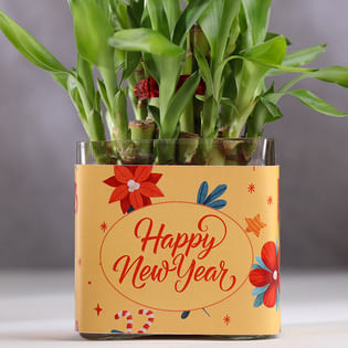 Two Layer Lucky Bamboo In New Year Glass Vase