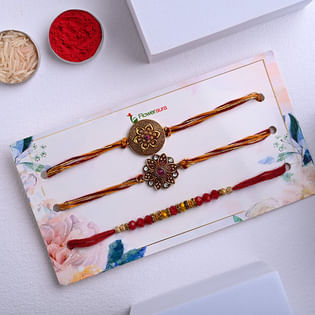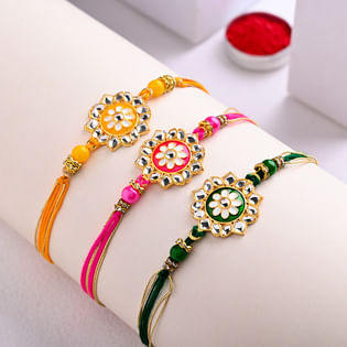 Matching Kundan Floral Rakhi Trio-New zealand