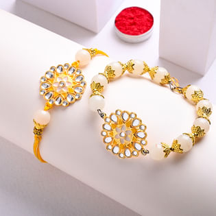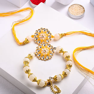 Yellow Kundan Couple Rakhi-New zealand