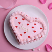 Express your love with this charming heart-shaped Chocolate Cake, designed to make every moment special. The moist chocolate base is topped with smooth pink cream, decorated with delicate red fondant heart shapes and a sweet "love" inscription. Perfect for Valentine's Day, anniversaries, or any occasion that celebrates love, this cake combines a delightful flavour with a romantic touch. Share the sweetness and create unforgettable memories with this beautiful, heartwarming treat.