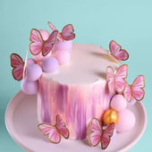Whimsy and elegance blend beautifully in this cake, designed to look as enchanting as it tastes. Shades of lilac and blush pink sweep across its surface, while delicate butterflies perch gracefully along the edges. Pastel spheres and golden accents add a touch of sophistication, making it a true centrepiece for any gathering. Inside, soft sponge layers pair with delicious frosting, creating a flavour that’s both rich and comforting. Ideal for birthdays, Daughter’s Day, Women's Day, or simply surprising someone special, this cake makes every moment unforgettable.