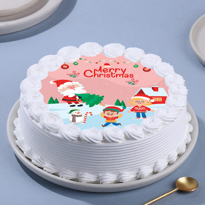 Make the Christmas celebration a droolsome one as you adore your friends and family with this exotic photo cake. Bring home Christmas bliss and treats with this round and creamy photo cake. Convey your wishes through this freshly baked cake. Order Today!