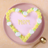 This heart-shaped Mother's Day cake is a sweet celebration of love for your mom. It's pretty in pink and has "Mom" written on top with a burst of yellow. This cake isn't just delicious; it looks like a gift from the heart, perfect for telling your mom how much you care. Share a slice with her and make her day as special as she is to you! This cake is indeed a sweet way to show Mom that she's your heart. It's perfect for enjoying together as you celebrate your mom!