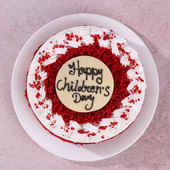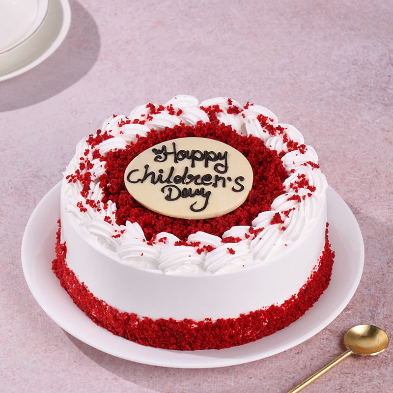 Rich red velvet sponge meets soft, smooth cream in this cheerful Children's Day cake, giving every bite a gentle sweetness that kids adore. The bright red crumbs add a fun, festive touch, making the cake look as joyful as the day itself. The creamy frosting keeps the texture light and comforting, perfect for little ones who enjoy flavour without anything overpowering. Whether you're planning a school celebration or a simple surprise at home, this cake sets the mood with its colour, charm, and childlike warmth, turning the occasion into a sweet memory they'll hold on to.