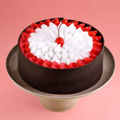 This Black Forest Cake is an irresistible treat that’s bound to make any occasion unforgettable. A decadent blend of rich, soft layers, filled with velvety cream, and topped with a stunning design of fresh red cherries and swirls of whipped cream. The striking dark chocolate crust adds a touch of elegance, making this cake as beautiful as it is delicious. Ideal for celebrations, romantic occasions, an indulgent treat, this cake will be the highlight of your event, ensuring every bite is filled with joy.