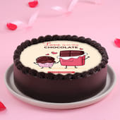 Sweetness takes centre stage with this chocolate cake, crafted to celebrate Chocolate Day in the most joyful way. Coated in smooth chocolate frosting, it features a playful illustration of chocolate characters alongside the line “Love is in the chocolate,” setting the mood instantly. The rich piped border adds depth and a handcrafted finish, making the cake feel thoughtful and indulgent. Perfect for gifting or sharing, this cake turns Chocolate Day into a simple reminder that some feelings are best expressed through chocolate, laughter, and a little extra sweetness.