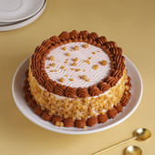 Crunchy, creamy, and irresistibly rich, this butterscotch cake is the perfect blend of flavour and texture. The light sponge is layered with smooth cream, while the sides are generously coated in crunchy caramelised butterscotch bits that add a delightful bite. Finished with neat chocolate swirls on top and a sprinkle of golden crunch, it’s a treat that looks as tempting as it tastes. Whether it’s a birthday, family celebration, or a simple craving, this cake guarantees joy in every slice.