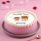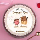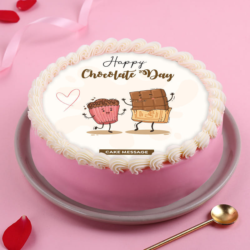 Designed to make the occasion feel instantly joyful, this Happy Chocolate Day cake blends charm with celebration. The smooth finish and neatly piped cream border give it a clean, handcrafted look that feels thoughtful and inviting. At the centre, a playful illustration of chocolate characters paired with a Chocolate Day message adds a light-hearted, affectionate touch. Perfect for gifting, sharing smiles, or marking the day in a simple yet memorable way, this cake turns a sweet sentiment into a moment worth celebrating together.