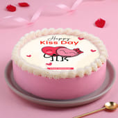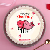 Finished with a smooth pastel base and a cheerful “Happy Kiss Day” edible print, it instantly draws smiles. Inside, soft sponge layers meet light, creamy frosting for a balanced bite that never feels too rich. The piped cream border adds a neat, celebratory touch, making it perfect for sharing affection in the sweetest way. Ideal for cosy surprises, quiet celebrations, or thoughtful gifting, this Kiss Day cake captures romance with ease and warmth, all in one delightful slice. Crafted to delight hearts and taste.