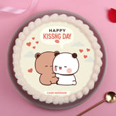Soft pastel tones and a cheerful bears kissing design make this cake an instant mood-lifter. The smooth cream finish holds a playful edible print that sets a sweet, affectionate tone at first glance. Inside, fluffy sponge layers meet light, balanced frosting that keeps every bite comforting and easy to enjoy. Finished with neat piped swirls, it feels thoughtful without being overdone. Ideal for Kiss Day surprises, cosy celebrations, or simple moments of affection, this cake turns a small gesture into something warm and memorable.