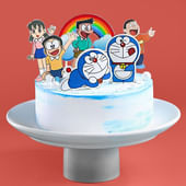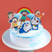 Soft puffs of white “clouds” encircle playful bursts of pastel rainbows atop a joyful Doraemon figure, all perched on a gentle sky-blue canvas. The layers beneath promise moist consistency and rich flavour in every slice. This cake isn’t just for birthdays, it’s for sweet moments where nostalgia, fun and affection come together. Gifting turns an occasion into a memory. Occasions deserve treats that speak joy, and this one does in every slice and every colour.