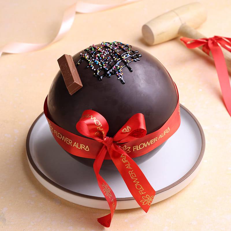 Break into happiness as you opt for this chocolate pinata cake drizzled with some colourful sprinkles, a bar of KitKat chocolate and chocolate sauce. This pinata cake is sure to become a crowd-pleaser when opted to commemorate various special days of our loved one's life.