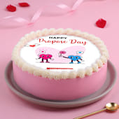 Express what’s in your heart with this delicious cake, specially designed to elevate Propose Day. The smooth finish, delicate cream borders, and adorable heart characters create a romantic mood, setting the stage for unforgettable memories. Perfect for a quiet dinner, a surprise reveal, or a sweet end to a long conversation, this cake adds warmth to every moment. It’s truly a heartfelt way to say you want to be together forever.