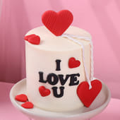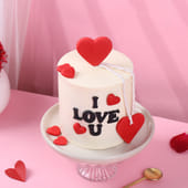 Celebrate love with this charming chocolate cream cake, designed to make any occasion sweeter. The smooth white base is decorated with bold black fondant letters spelling out "I LOVE U," while red hearts and a heartbeat design add a fun, romantic touch. The cake is not just visually stunning, but the rich chocolate cream filling ensures each bite is as delightful as the message it carries. Perfect for Valentine’s Day, anniversaries, or anytime you want to express your love in the most delicious way.