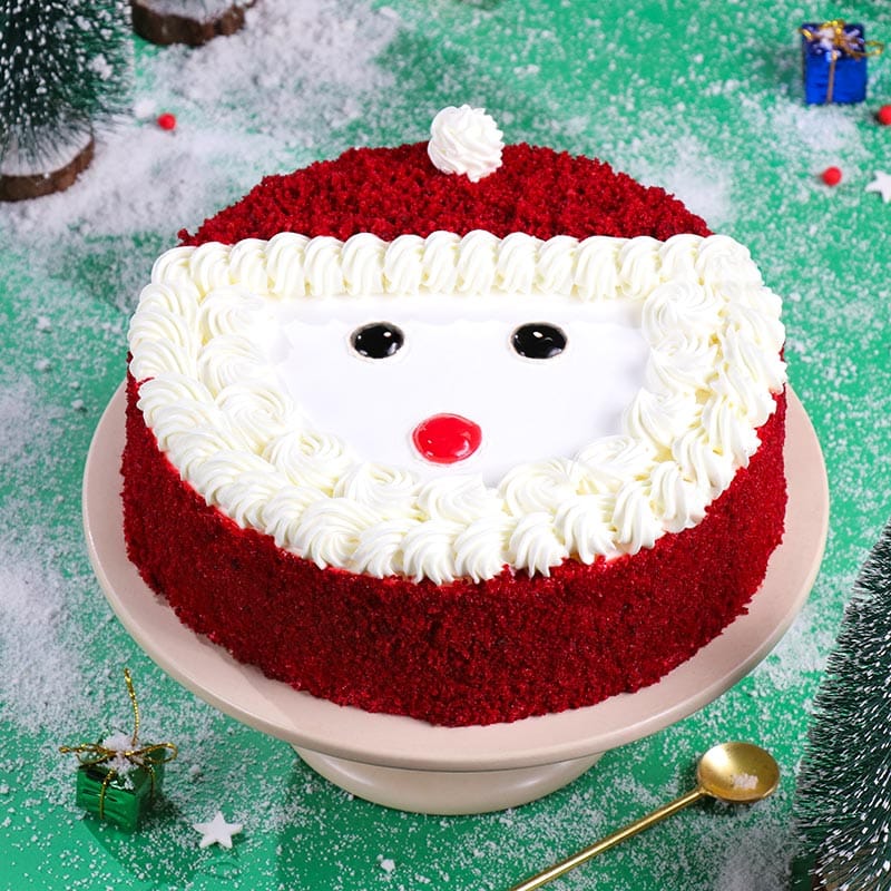 Add a festive spark to your celebrations with this cheerful Santa cake in rich red velvet flavour. Its moist, velvety texture and creamy frosting deliver pure joy in every bite. The playful design, featuring Santa’s smiling face, brings warmth and whimsy to your holiday table, making it perfect for family gatherings or gifting. Each slice is a blend of soft cake and smooth frosting, creating a melt-in-your-mouth experience. This cake isn’t just a dessert—it’s the sweetest way to spread Christmas cheer and make memories with loved ones!
