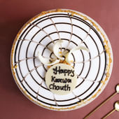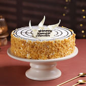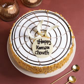 Celebrate Karwa Chauth with a sweet touch of tradition and indulgence. This Butterscotch Cream Cake is a beautiful blend of creamy butterscotch layers, decorated with delicate swirls of chocolate and topped with a heartfelt "Happy Karwa Chauth" message. The cake’s soft, melt-in-your-mouth texture paired with its rich flavour makes it the perfect symbol of love and devotion for the occasion. Let this delightful treat be part of your celebrations, adding sweetness to the day and making your Karwa Chauth even more special.